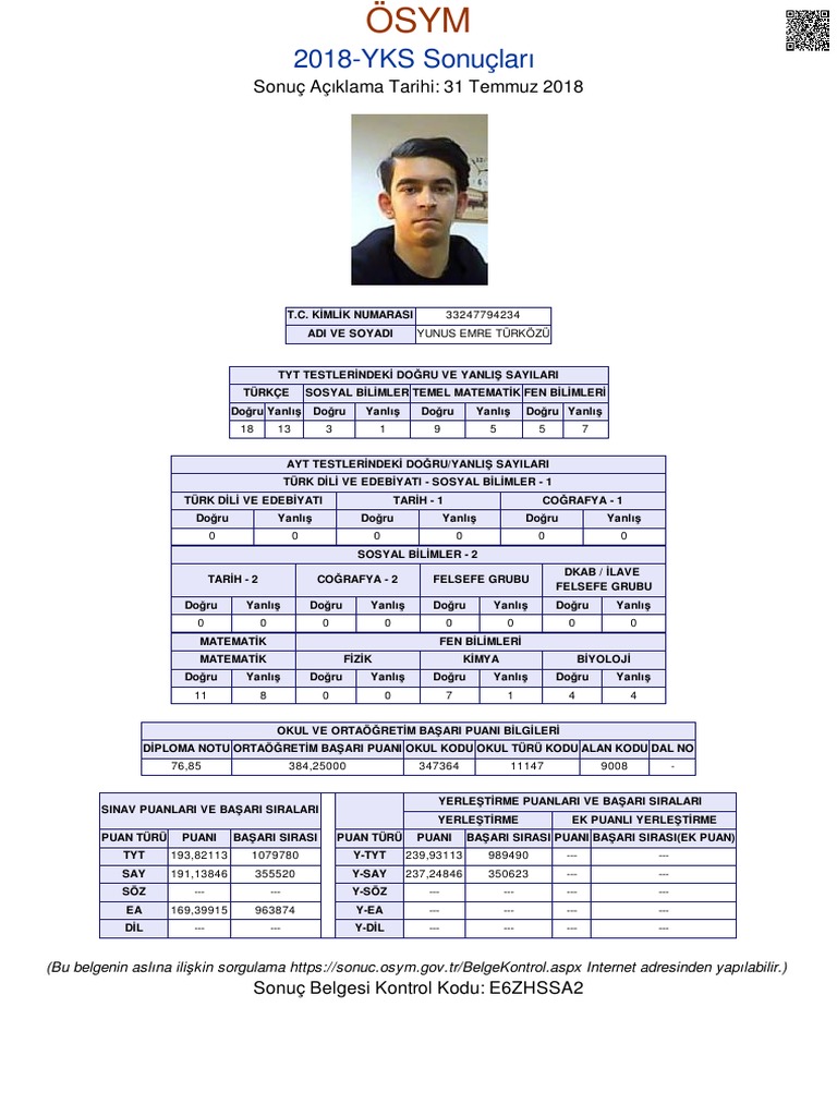 2021 Yks Sonuc Belgesi Ornekleri Youtube